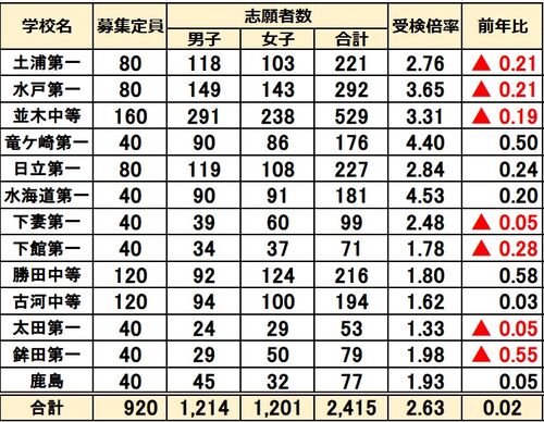 2025年度(令和7年度)茨城県の公立中高一貫校(県立中学校及び茨城県立中等教育学校)の応募者数、応募倍率(志願者数、志願倍率)が発表されました。 全13校の募集定員、応募者数、倍率を、偏差値順に一覧にしてみましたのでご紹介します。 目次 2025年度 …