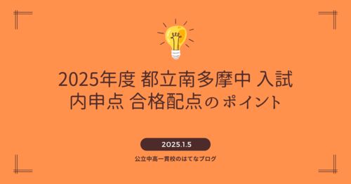2025年度(令和7年度)の都立中高一貫校受検にあたり、内申点の配点割合から合格可能性を考えたいと思います。 今回は、東京都立南多摩中等教育学校について考えてみたいと思います。 都立中受検の内申点は年度により見直しが行われますが、2025年度(令和7…