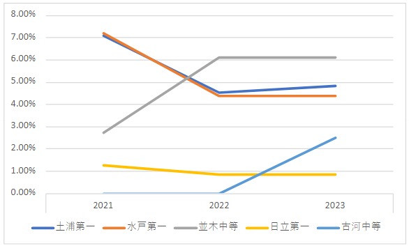 2021年~2023年 茨城県立中高一貫校 東大合格率の推移